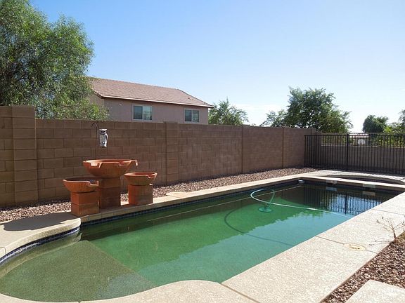 Buckeye home with 3 bedroom, 2 bath and a sparkling swimming pool. Gently lived in vacation home. Hardly ever used, just like new! Great Sundance Subdivision home bordering community greenbelt. Spacious floor plan with separate living room and family room. Open kitchen features lots of cabinets, pantry and large breakfast bar. The master retreat is huge with oversized garden tub and walk-in closet. Backyard is perfect with refreshing pool and water feature. All on a very private corner lot next to greenbelt. RV Gate and large side yard. Welcome Home!