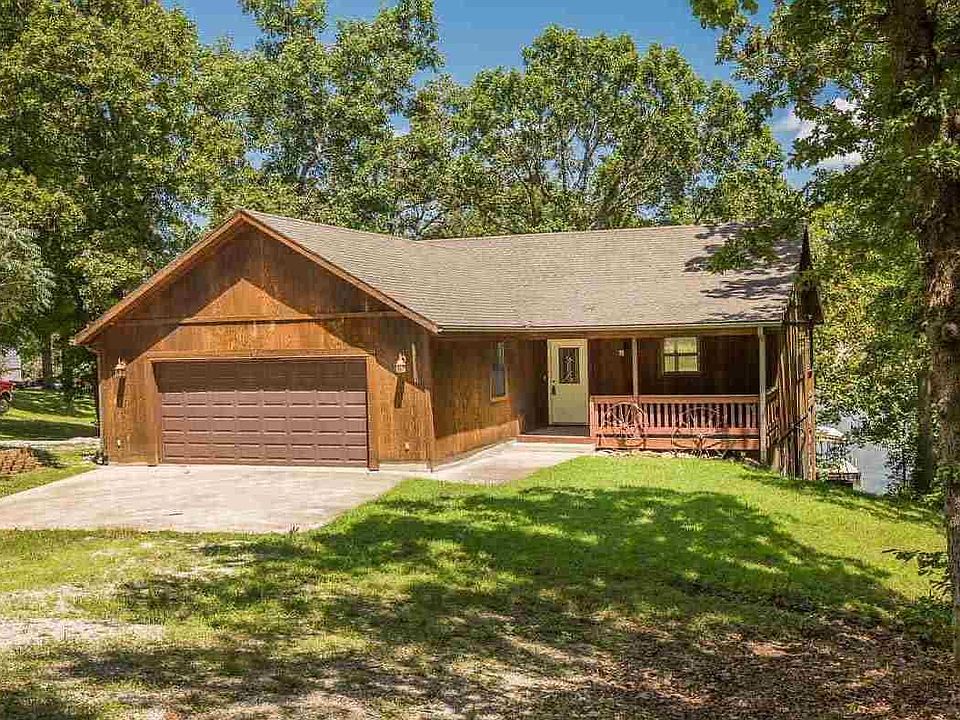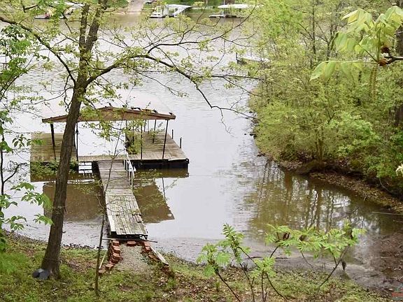 Secluded, custom built, 3 Bedroom, 2.5 bath, 2 car garage, with full, finished walkout lower level to patio overlooking covered 1 slip dock in quiet cove at the 84mm of the Lake of the Ozarks. This home was built in 2005 and has only been used a few months as it is a vacation home and the sellers are only here limited time on vacation. The property consists of a 2352 sq ft home which sits on 2 waterfront lots plus another 1 acre lot across the road for building your new storage shed for boats, mowers, and water toys! Each room wired for internet, sound, phone, surveillance. Great location!
