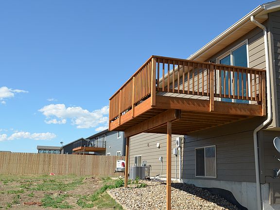 Almost new Custom Home in Valley Heights Subdivision. Minutes away from Rapid City and Ellsworth Air Force Base. The home has 4 bedrooms including a master Suite, large living, dining and kitchen with a nice pantry, large three car garage and huge yard with sprinkler system. The features redwood deck and Porch, Engineered floor trusses, 95% efficient furnace, upgraded flooring, tray in master bedroom, vaulted ceilings in the living room and kitchen, granite counter tops, maintenance free siding, maintenance free windows, 6 panel solid core oak doors, custom cabinetry in kitchen and bathrooms, and many more features that set it apart from other homes. The walkout basement has three finished bedrooms and a third bath. Roof only 2 years old!