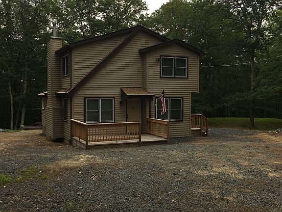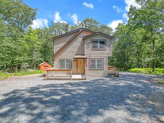 Check Out this PERFECT Contemporary furnished home on a private 2.12 ACRES of LAND for Vacation or Primary Use. This meticulous 3 Bedroom, 2 Bathroom features beautiful hardwood flooring, floor to ceiling modern stone-faced wood burning fireplace, sun-shining skylights, updated kitchen, enclosed screened room, exterior shed for storage, outdoor fire pit for roasting Smores and so much more! New Roof Installed in 2016, Newer Windows, New Exterior Siding and Side Deck. This beautiful home is located inside the amenity filled community of Pocono Ranch Lands. Be sure to check out the Two Outdoor Pools, Clubhouse, Horse Back Riding, Lighted Tennis & Basketball Courts, Ski Area and Playgrounds! Don't miss this Move in Ready Home! Schedule your Appointment Today!