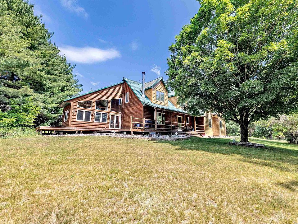 Set on 4.25 acres with a pond, this 3 bedroom home offers the country tranquility you are looking for. With over 2300 sq ft of living space you'll enjoy the rustic vibe that you will feel as you walk through the home. Hardwood floors can be found throughout most of the main level; Wood beam ceilings in the living room and kitchen; an added Family room with lots of windows, rustic log interior with brick accent wall and patio doors leading to the wrap around deck; 4 seasons room with built-in hot tub; 1st floor laundry; upstairs are all 3 spacious bedrooms; primary bedroom with patio door to private deck; updated bathroom with tile floors, tile shower, double sinks in vanity and whirlpool tub. Finished rec room in the basement. Outside are 4+ acres with an additional garage. Horses allowed