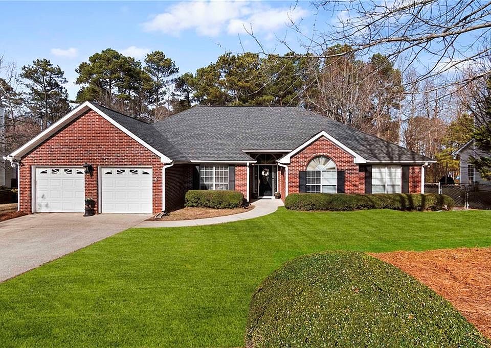 Welcome to 2297 Rocksram Ct, an elegant and functional home. The foyer sets the tone with warmth and style. Luxurious vinyl plank flooring in the main living area ensures both aesthetics and durability. The spacious formal dining room comfortably seats 12 guests for memorable gatherings. The kitchen is a central hub designed for convenience and culinary inspiration, featuring ample cabinets, stainless appliances, a gas range, and a pantry. Two living spaces cater to a growing family, with a living room boasting a gas fireplace and vaulted ceilings. The well-maintained laundry room adds daily convenience. The home's thoughtful layout includes three spacious bedrooms and a tiled bath on one side, while the master suite on the other offers a large walk-in closet, a roomy bedroom with a trey ceiling, and an updated double vanity. The master bath includes a custom-tiled shower and garden tub for a luxurious retreat. The heating system is powered by natural gas, with a 2-year-old gas hot water heater ensuring efficiency. The architectural shingled roof, just 6 years old, provides peace of mind. The HVAC system, serviced in January, ensures year-round comfort. This charming brick-front home features low-maintenance vinyl siding, a fenced yard with a deck for entertaining, and a ranch floor plan with an additional half story above. The backyard includes a shed workshop with power and a custom brick fire pit for cozy evenings outdoors. Upstairs, two roomy bedrooms and a full bathroom provide an ideal space for guests. Located in the sought-after Woodward Mill Elementary, Twin Rivers Middle, and Mountain View High School district in Buford, GA, it's an excellent choice for families. Don't miss the opportunity to make this meticulously maintained home yours!
