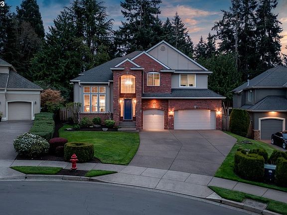 Welcome to your dream home in Tualatin's premier neighborhood of Victoria Woods! This stunning property is situated on a quiet cul-de-sac, offering ultimate privacy with an entertainer's dream outdoor area in the back. The entire backyard is truly a retreat, featuring a new hot tub, new fence, new patio & a flat usable yard for entertaining guests or relaxing in peace. As you arrive at this estate-style home, you'll immediately be drawn to the impressive curb appeal with long driveway, established landscaping, and large 3-car garage. Step inside and be wowed by the huge living spaces, impressive ceiling height, and massive windows that flood the home with natural light. The open concept living room/kitchen combo showcases an eating nook, French doors to the backyard, a gas fireplace, custom built-ins & soaring ceilings creating a warm and inviting atmosphere. The main level features a spacious office or 5th bedroom while the upstairs offers the primary suite and 3 additional bedrooms. Several updates have already been completed throughout the home including new windows & new carpet on the main level. Located in a premium location, this home offers quick access to I-5, grocery stores, gas stations, coffee shops, and is within walking distance to schools. Don't miss this rare opportunity to own this expansive & well-built Victoria Woods gem!