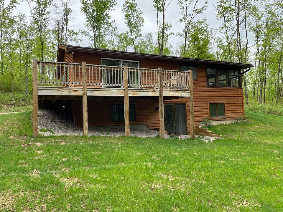Listen to the loons, watch the deer walk through. Nestled in the forest, this 4BR, two full bath home has the perfect ambiance of what the North Woods has to offer. This house was built/remodeled two years ago by Weidenbauer Builders, craftsmanship is beautiful. New foundation and has new furnace, A/C, septic, well, water heater, roof, deck, siding, electrical, all new screens, several windows and doors are new. Cedar siding. There is a 3-season porch with beautiful views and easy-use windows. Downstairs was completely built by Weidenbauer. Owner has impeccable taste; high-end appliances (including a Wolf range and Maytag fridge), new washer/dryer; and furnishings (which are negotiable). The house is on upper portion of the lot to give beautiful vistas, including a look at Anvil Lake. Across the road from lake, boat landing and campground beach very nearby; easy access to biking, hiking, x-c trails including Anvil Lake Trail State Natural Area; and ATV/snowmobile trails.