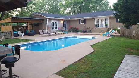 Enjoy this Brick 6Br & 3 Ba, 2 attached garages, livingrm , dinningrm, kitchen on main floor, plus another kitchen,bath, utillity room and living quarters. in basement... 16 x32 inground pool. Pool house, Bar,etc.. Fenced in back yard.Located on a 1.5acre