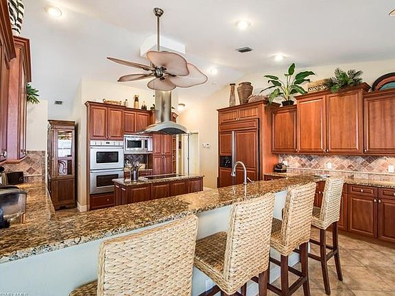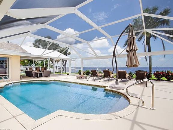 Welcome to Gold Coast Estates! This peaceful secluded neighborhood in the heart of Cape Coral is everything you have been dreaming of. Your new home comes complete with spectacular views, all the amenities, and the sense of the true Florida lifestyle. Nestled among the mature landscaping your new home offers a waterfront dream land with a large screened lanai with an unobstructed panoramic screen view of the river, a beautiful pool and extra under-roof addition with built in grill, a wrap around dock with 10,000 lb boat lift, a fresh coat of paint and a well manicured lawn. Inside features a beautiful master suite with 2 large walk-in closets and perfectly appointed bathroom. The kitchen is a home chefs dream offering large built-in refrigerator, double convection wall ovens, dual dishwasher drawers, large electric cook top and enough cabinet space for all your tools and toys. With well over 2100 sqft of indoor living space, and nearly 2000 sqft of screened outdoor living space you will never run out of room to enjoy your new home. Furnishings negotiable. Turn Key furniture available.