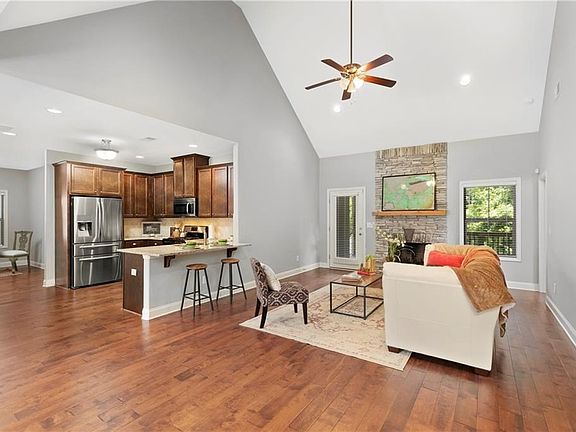 Bella Casa plan with a Finished basement! Hardwood floors, TWO living spaces, wood burning fireplace, granite counters, recessed lighting, tiled wet areas, site-built cabinetry, spray foam insulation, tankless water heater, cathedral ceilings, HUGE master suite w/ separate shower/tub & large walk-in closet. Extra room in the basement that is currently the room for the dogs could be storage for outdoor equipment.