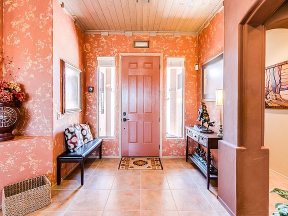 Attention to detail at every turn! Stunning semi-custom home in gated Canoa NW is contemporary southwest living at its finest. Corner lot overlooks natural arroyo with panoramic desert and mountain views. Inside find custom finishes throughout, from gray-wash wood plank ceilings and crown moulding, custom hickory doors, Venetian plaster wall treatments. Spacious kitchen w/large island, custom hickory cabinets w/over cabinet lighting, large island, SS appliances. Casual dining off family room w/beehive fireplace and separate formal living and dining area offers plenty of entertaining options. Den w/attached bonus space can be an executive office, music or billiard room, or whatever you make it. Large laundry room w/hobby space. Enjoy the outdoors from front paver patio or rear screen porch.