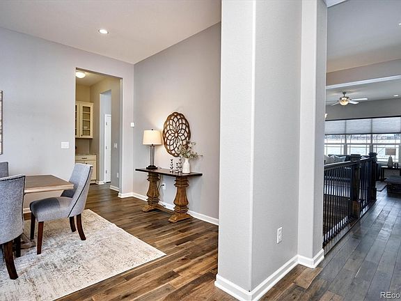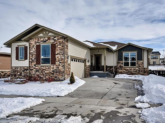 Fabulous Hilltop at Inspiration 55+ Community! Toll Brothers Windom floor plan! This beautifully upgraded ranch features approximately 3,252 finished square feet with 3 bedrooms, 3 baths, finished basement & oversized 2 car garage. You’ll love the open layout, the generously sized rooms, the extended hardwood flooring & the exceptional greenbelt location. A covered entry opens to an elegant foyer, adjoining flex space with optional use as a dining room or a main floor study. Wonderful natural light from walls of windows draws you into the living room with stacked stone gas fireplace surround & open space views. Enjoy entertaining? You’ll love the design of this home! There’s seating/serving room for a crowd at this expansive kitchen island with abundant 42” soft close cabinets, counter space galore, exceptional storage space & upgraded KitchenAid appliances. The kitchen dining space with bay window leads to the covered patio with gas line for your grill, cable outlet & electric heater. You’ll enjoy this patio year-round! Two large bedrooms on the main floor include a luxurious primary retreat with bay window, 2 walk-in closets & an exceptional primary bath with separate vanities, jetted tub & walk-in shower with bench. The finished basement is a bonus with spacious family room, stacked stone gas fireplace surround with TV wiring, bedroom, full bath, bar with sink & exercise/game room flex space. Additional features: counter depth 42” refrigerator, mud room built-in bench & cabinets, convenient Butler’s pantry, new carpet in the main floor bedrooms, oversized side load garage with epoxy finish, Pella custom front door, central vacuum, furnace humidifier, tankless water heater, fenced yard & more. Enjoy the resort-style amenities & clubs at the Hilltop Club with café, fitness, pool, hot tub, tennis, bocce, pickleball & more. Convenient to E-470, DIA, shopping & recreation. View the property website: www.22981EDelNortePl.com and Hurry to make this home yours!