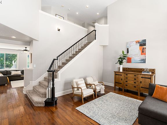 Welcome to this newly remodeled Legend Home located in Tualatin sought after Victoria Gardens neighborhood! This special lot is located on a quiet street backing to a colorful and serene greenbelt providing a peaceful park-like setting rarely found in the suburbs. Enjoy living in a safe and picturesque neighborhood surrounded by nature and good neighbors, while being mere minutes from restaurants, shopping, parks, hiking trails, medical facilities, top-rated schools, groceries, freeway access, and more. The smartly designed and hard to find floor plan features an office on the main level, as well as a vaulted bonus room, and four spacious bedrooms, including a primary suite and guest suite, all on the upper level. Hosting friends and family is an easy feat with newly updated formal living and dining spaces, as well as the cozy great room boasting bright hardwood floors, new lighting, new cabinetry, a new custom fireplace, and a wall of windows backlit by territorial views. Cooking is a joy in the fully renovated kitchen fit with charming quartz countertops, timeless backsplash, stainless steel appliances, fresh paint, a custom hidden pantry, and a cozy eating nook with sliding doors leading to the covered patio, sports court, gardens, gardening shed, and protected forest. With all newer flooring, cabinetry, light fixtures, hardware, fireplace surrounds, interior and exterior paint, a full kitchen remodel, professional hardscaping with a sprinkler system, new AC in 2018, new gas water heater in 2020, and a central vac system, all that is left for you to do is move into the dream home and community you've been waiting for!