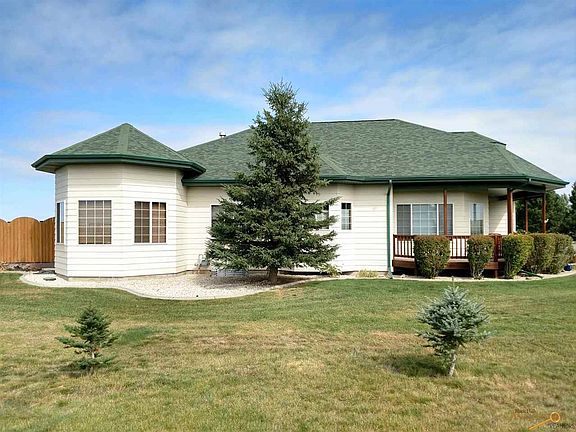 Custom Built One Level Living with Great Views. 3 Bedroom 2 Bath Ranch Style Home Ready for New Owner. Unique Floor Plan featuring Open Concept Living, Granite countertops and Island, Hardwood Floors, Gas Fireplace, Huge Low Maintenance Deck Front and Back. Master Suite with His and Her Closets, Jetted Soaking Tub, Separate Shower, Double Vanity, and Separate Workout Room. Family Room with Glass Doors, Office off Family Room with Great Views of the Black Hills. 2 Lots. Build your DREAM Shop on the 2nd Lot. So Many Options. Great Architecture throughout this Custom Built Gem!