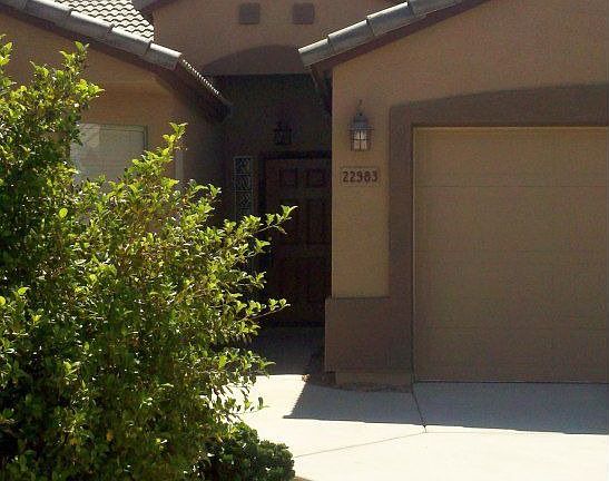 Rare Canterra Home located in an all single level neighborhood for privacy. Shows pride of ownership. Beautiful Open Great Room Floorplan with tile and dark wood laminate flooring throughout. Custom cabinets in den/office. 2nd Bathroom complete makeover. Vaulted Ceilings, 2nd Oversized Bedroom has walkin closet. 4th bedroom/playoom/workout room has separate outside entrance with double french doors. May have been original builder office. Buyer to verify sq ft as other models, same floorplan with 2 car garage listed at 2361sf. Can be converted back to garage easily. Home is located in Community Facilities District (CFD) area, paid semiannually.