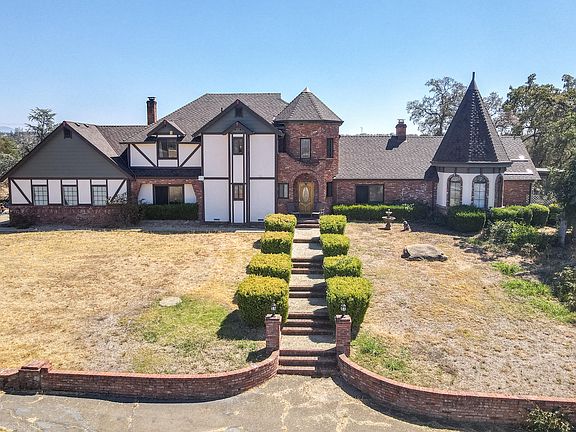 This elegant English Tudor Manor boasts spectacular open views from every window in the house especially lovely from the two turrets. Enjoy sunrise views on the back deck near the pool and sunset from your front stoop. Additional outside features include a koi pond and gazebo for relaxing in the evening. The 2 Story main home is approximately 4100sqft with 4Bd/3Ba to include attached guest house and includes full kitchen with refrigerator, bathroom with shower stall and new swamp cooler. Wood burning fireplace in the Family Room and additional free standing fire place in living room. Eat in kitchen area and additional formal dining room with built in wine refrigerator. Kitchen includes new convection oven and stainless steel refrigerator. Ample counter and cabinet space,
