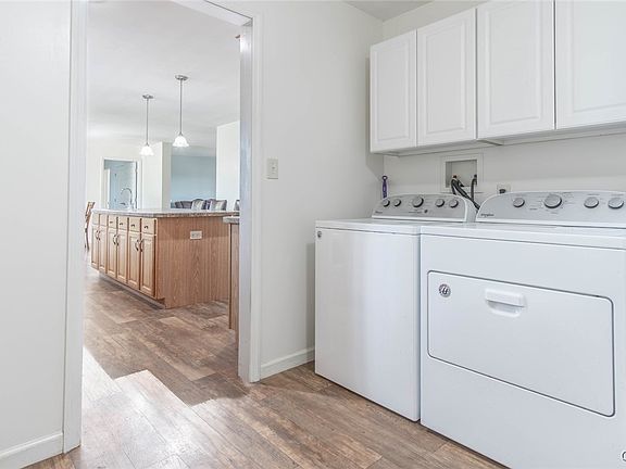 The 1st floor offers laundry, a wide open, well appointed kitchen with over sized island (perfect for prep or entertaining) and a lovely eating area and living room. Currently set up as a 2 bedroom home with one being a primary suite and the other being a gigantic room with 2 closets and a full bathroom just outside the room. This room used to be 2 bedrooms but the wall separating them was removed to make the 1 large room, it could easily be put back.