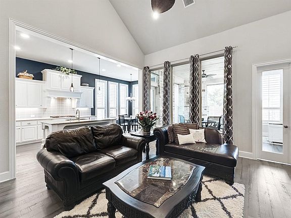 Highland Homes stunner just a chip shot away from the new PGA Frisco and all it has to offer. This immaculate 4 bedroom, 4 bath on an oversized lot has an open and flexible plan with upgrades and designer finishes throughout. The gourmet kitchen and living area is open and bright with a butlers pantry connecting to a formal dining room. The first floor primary bedroom is a spa-like retreat with plenty of space, dual vanities, soaking tub and plenty of storage. Also downstairs is a large secondary bedroom and ensuite, a full size media room and a dedicated office. Upstairs are 2 more bedrooms connected by a large bath and a huge family room. The oversized 4 car garage has epoxy floors, built-in cabinets and sink and is plenty big enough for 3 cars, a golf cart and all your toys. The outdoor living area is a true oasis. An extended covered patio with electric shades, built in grill and fireplace overlooks a 900+ sf synthetic turf putting green. This home is truly a showstopper! 2022-07-09