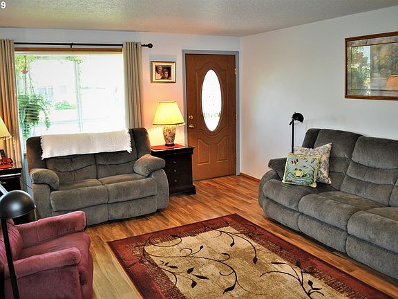Nice clean house in Woodburn Estates a 55 plus community. Gas fireplace, Vinyl windows, Large master bedroom, Grab bars in the updated shower, Updated kitchen, Laminate floors, 5 year old roof. 3 Yr old heat pump, updated lighting, Auto yard sprinklers. Fenced back yard, covered patio, shop takes part of the (26'x19')2 car garage. HOA has a very nice clubhouse with 18 hole golf course and RV storage.