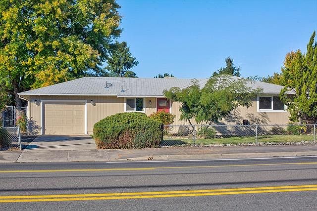 There is move in ready and then there is MOVE IN READY! Nicely updated with newer paint inside and out, newer roof, kitchen cabinets, back splash, stainless appliances, wood like laminate in living area, carpet in bedrooms, six panel doors, attic fan, ceiling fans and canned lighting. Cozy wood burning fireplace, large hall bath with tile surround jacuzzi tub/shower, vinyl windows, wood blinds and all TV wall mounts stay. A corner lot with a large backyard, gated RV parking, raised garden beds, blueberries, strawberries, Fugi apples, garden shed, sprinklers front and rear, and a huge shade tree. A new solar system for no, or low, electric bills can be operated remotely! Garage has AC and heat, lots of lighting and carpet on the floor. This home truly has it all!