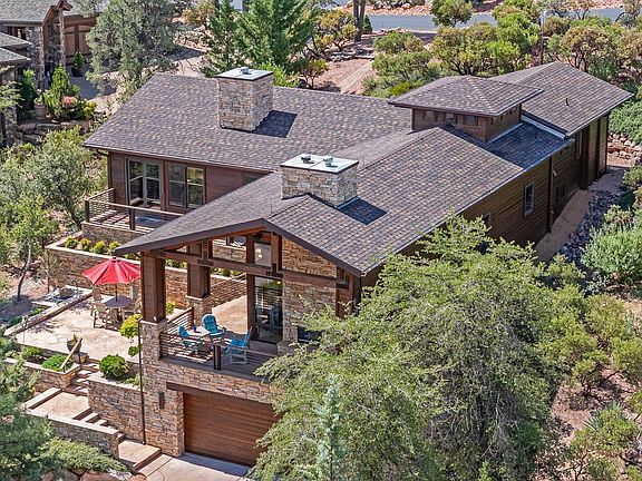 The Master suite boasts tons of light and more magnificent Rim views, dual walk-in closets and dual sinks, and a beautiful en-suite with radiant heated floors and a walk-in shower - the perfect private retreat! The roomy second/guest bedroom is located on its own third private level and has a full ensuite with jetted tub and shower, and direct access to a private stone patio and extra parking space behind the home. Third bedroom/den has its own gas fireplace, built in shelves and more delightful views of the Rim! Downstairs you will find a finished basement with a hobby room with a built-in wine rack, more storage, and a workshop, both of which could be converted to another use. These rooms lead into the garage. Upgrades also include a garage-to-kitchen elevator and dumb-waiter, new roof, gutters and vent pipes installed in late 2023, outside painted/stained in 2024, tankless water heater installed in 2022, Simply Safe security system, seven Hampton Bay ceiling fans, master bath floor thermostat and touch kitchen faucet. Too many features to mention, a must-see property! COME AND ENJOY STARLIT, PEACEFUL EVENINGS IN RIM COUNTRY; ESCAPE THE HEAT AND RELAX IN THE COOLNESS OF OUR NIGHTS YEAR ROUND, WITH AMAZING VIEWS AND WILDLIFE ALL AROUND YOU. MEMBERSHIP TO CHAPARRAL PINES ALSO INCLUDES MEMBERSHIP TO THE RIM CLUB TRAILHEAD, DINING AND FITNESS CENTERS, LOCATED JUST ACROSS HWY 260. CLUBS OFFER 2 POOLS, TWO FITNESS CENTERS, TWO CLUBHOUSES WITH GOURMET DINING, GOLF SHOPS, TENNIS AND PICKLE BALL COURTS, AND CHILDREN'S POOL AND PLAY AREA, SOCCER FIELD, AND DOG PARK IN CHAPARRAL PINES. GOLF MEMBERSHIPS ARE OPTIONAL AND JOINT FOR BOTH CLUBS.