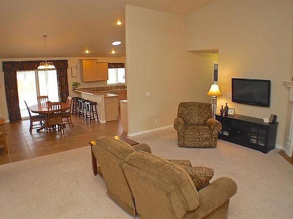 Single level living at its best. True 4 bedrooms, 2 bath home with lots of space, great room feeling in main room close to dining area and kitchen. Tile in the kitchen and entry. Kitchen features SS appliances, pantry and tons of storage; vaulted ceilings create a light and bright atmosphere. All bedrooms have walk in closets. Living room has fireplace, patio off dining area is covered and has drawn down sun shades. Yard is fenced, auto sprinklers, large 3 car garage, ready for immediate sale.