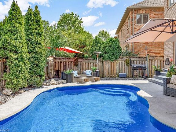 Experience luxury family living in Westmount - one of Oakville’s most sought-after neighbourhoods, renowned for its abundance of parks, scenic walking trails, top-ranked schools, & unbeatable proximity to essential amenities. Located just 2 minutes from the Oakville Hospital & offering quick access to major highways, this is the ideal setting for commuters & growing families alike. This executive 4+1-bedroom, 3.5-bath home boasts approx. 2,677 sq. ft. of elegant living space, plus a professionally finished basement. Outside, your private backyard oasis features a saltwater pool surrounded by stamped concrete—ideal for summer fun. Inside, an insightful floor plan with timeless design meets modern upgrades. Enjoy new wide-plank hardwood flooring & upgraded hardwood staircase (2025), & 9-foot main floor ceilings. The sunken living room & formal dining room with coffered ceiling create a welcoming space to host guests, while the custom eat-in kitchen impresses with custom maple cabinetry, quartz countertops, under-cabinet lighting, stainless-steel appliances, an island with a breakfast bar, & a walkout to the backyard. Completing the main floor are a spacious family room with a gas fireplace, a powder room, a renovated laundry room, & inside entry to the attached double garage. Upstairs, discover 4 generous bedrooms, & 2 full bathrooms—including a luxurious primary suite with pool views, & a spa-like 5-piece ensuite with soaker tub & glass shower. The finished basement adds tremendous value with a large recreation room, games room, a fifth bedroom, & a full 3-piece bathroom—ideal for guests or teenagers. Recent improvements include a new A/C unit & roof shingles (2022). For added peace of mind, pool filters are changed every 2 years. If you're searching for a move-in-ready home in Oakville with a pool, a finished basement, & quality upgrades in a premium school district, this Westmount gem checks every box.