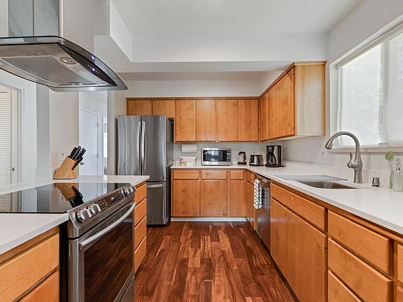 Long term (year) furnished $2,600 USD/month and Refundable security deposit: $2,600 USD Newly-remodeled house. The location is easy to get to. It is near Oregon State University in Corvallis. It's a quiet neighborhood and close to grocery stores, restaurants and it's only a few minutes to downtown. The bedrooms and bathrooms are spacious and comfortable. You will love the open kitchen/living/dining room area. This has a fabulous multilevel setup with 2 bedrooms upstairs, and 1 down stairs which allows for privacy when desired. Large garage for two cars in tandem, plus lots of additional space for storage. Ductless heat pump with electric heat backup. Deck, no pets, no smoking. Renter is responsible for utilities: water, power, garbage and internet. You will also experience the wildlife visitors like deer and wild turkeys. Renter is responsible for utilities: water, power, garbage and internet. Owner is responsible for HOA fees. No smoking. Two bedrooms furnished with king beds, one with queen bed. Dining table with 8 chairs. Living furnished with couch, love seat, chair, and coffee table. Also includes washer and dryer. Deck has picnic table. It's not include in the furnished option: Coffeemakers, TV, toaster, kettle and bicycles. Information deemed reliable but not guaranteed.