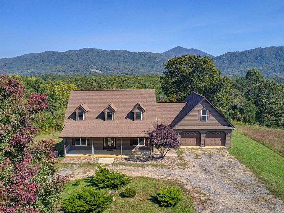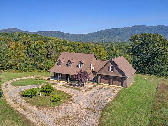 TWO HOMES for the price of one! Both with Spectacular Mountain Views! 37.14 Acres that joins National Forest. Private & Secluded. Lots of road frontage. Acreage has lush open fields & woods, spring fed pond, another pond near barn, creek, 30' x 30' barn with 2 lofts. Land is perfect for livestock, horses and hunting. Main home is a custom built beautiful Cape Cod with open floor plan, gas log fireplace, beautiful white oak hardwood floors, master on main level has a private office area and screened in porch. This level offers Great room that leads to a patio and flat backyard with amazing views of the Peaks and eat-in-kitchen with brand new stainless steel appliances, laundry room and attached 2 car garage.Two bedrooms on upper level and loft area perfect for reading.