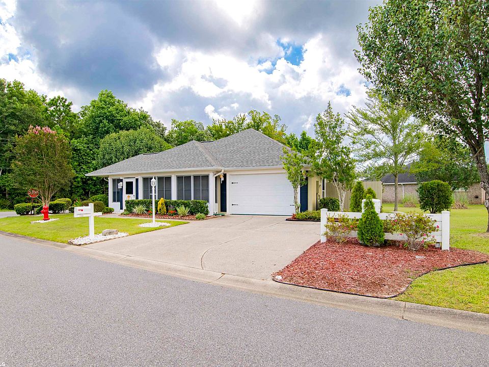 You will not want to miss out on the opportunity to own this exceptionally maintained corner lot cottage in Leisure Lakes. This spacious yard includes a half lot valued around $15,000 and is one of the few homes in the neighborhood to have a true laundry room, a heated/cooled front porch sun room, as well as a climate controlled garage. The home is move in ready with fresh interior neutral paint throughout. Leisure Lakes has a community pool, clubhouse and water views of the tranquil lake. The location is unbeatable, close to many of Foley's main attractions such as OWA, the Sportsplex, Graham Creek park/nature preserves and much more! Call today to schedule a tour, this one wont last!