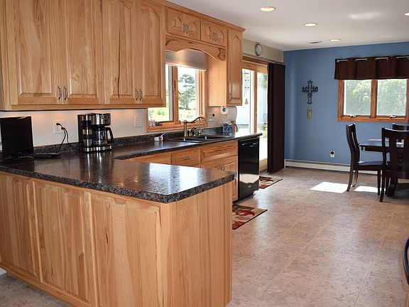 BEAUTIFUL SETTING, Raised Ranch 2+ bedrooms/ 2 full baths NEW-Kitchen, NEW-laundry room, NEW- master walk in closet, NEW master bath, NEW entryway, NEW oversized 2 car heated garage/storage and attic, NEW hot water heat+ NEW electric heat, NEW air, Natural Gas Completely remodeled, siding, windows, floors. NEW- 40 X 56 shed. 2nd attached 2 car heated garage/workshop. Smaller shed with water, previously used for horses. Across from State Land Home is move in ready- Motivated Seller- Make an offer.