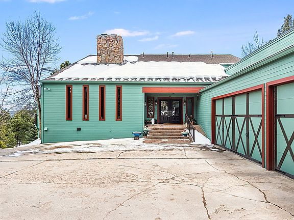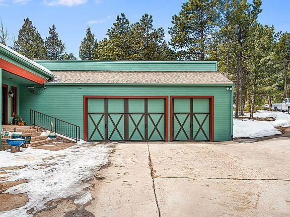 Sitting on 2.2 acres this home has privacy and beautiful natural mountain landscaping. Minutes to C470 and Denver. Convenient 285 access including an under highway on-ramp less than 1/2 mile south. Road is paved and plowed making travel easy during winter months. Area features excellent high-speed internet connectivity and cell service unlike most mountain communities allowing work from home or remote learning. An open floor plan with vaulted ceilings greets you as you arrive through newly installed double doors. Large windows, raw milled cedar plank ceilings, custom plantation shutters, and the cozy ambiance from several wood burning fireplaces make this an entertainer's dream! There is no shortage of space, easily allowing you to host the entire family or lots of friends for any special occasion. Kitchen features ample storage, slab granite counters, and an over-sized breakfast nook. Two bedrooms situated on the main floor and a Laundry/Mud room with separate exterior access to dog run. Enclosed porch space adds 1649ft of expanded living areas in the Health & Wellness Spa Room and the Game Room which is adjacent to a Pub Style Wet Bar. Step out to a large maintenance free concrete patio complete with 2 custom built-in grills. The upper floor bedrooms are spacious and private. The master suite features vaulted wood ceilings, a stunning hardwood accent wall, 5 piece master bathroom with a cast iron claw foot tub, 2 separate vanities, large linen closets and spacious walk-in closet. Large private deck with French Doors is great for enjoying the beautiful mountain and city views. Large utility space under home for all major systems. NEW 50 gallon water heater, NEWER Roof, NEWER boiler, NEWER water storage tanks, NEWER well pump, radon mitigation system (recently tested), and vapor barrier. Recent exterior paint, gutters, heat tape, and garage doors with openers. The property also features an exterior fire mitigation water tank. Septic System pumped and inspected.