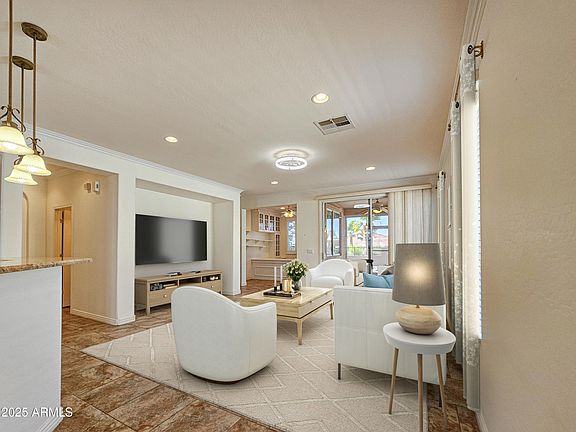 Step into comfort and carefree living with this beautifully maintained gem. The moment you enter, you'll feel the warmth and openness of the thoughtfully designed floor plan. The spacious kitchen features granite countertops, a breakfast bar, and an abundance of cabinetry. Perfect for preparing meals while chatting with friends. Need a quiet place to focus or unwind? You'll love the dedicated office with built-in shelves and desk; ideal for hobbies or working from home. And when it's time to recharge, the generously sized bedrooms offer true comfort, with the primary suite boasting a walk-in shower and expansive closet space. BONUS: The benefit of low electric bills with prepaid leased solar. All this in one of the area's most vibrant active adult communities. Also be sure to enter your Arizona Room to soak up the sunshine year-round, or host an evening gathering in your private, fenced backyard. With double-pane windows and sliding glass door, you can keep the heat out in the summer and open them up in the fall for a cooler breeze through the home. You will love the 2-car garage with an abundance of built-in storage. Here, you don't just buy a home, you embrace a lifestyle. Friendly neighbors, quiet streets, and amenities that make every day feel like a vacation. Ready to enjoy the freedom, fun, and fulfillment you've earned? NOTE WORTHY: The Seller may be able to offer at no-cost a 1-year Buydown saving the Buyer thousands, OR possibly apply this offer to reducing the cost for a 2-1 Buydown. More reason to see this outstanding home - priced below appraisal and a lower interest rate. Put this on your short-list to see and look forward to seeing YOU there.