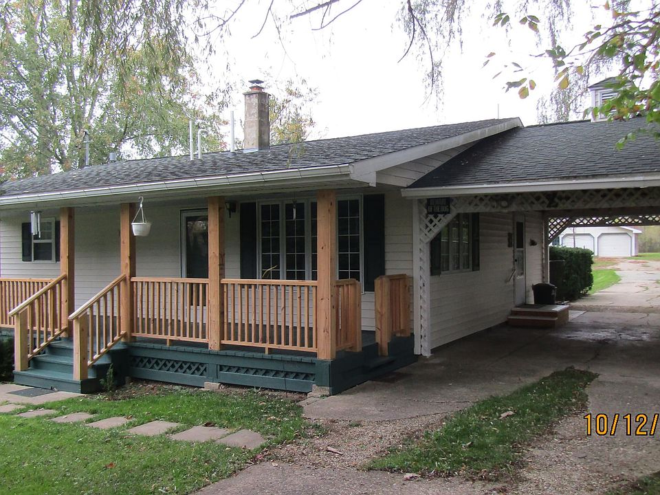 Very secluded setting. Home features 2 bedrooms, 1.5 baths, living room, dining room, kitchen. Covered porch, large brick patio, above ground pool, partially fenced yard. 30x50 pole barn with electric and concrete floor. 24x30 pole barn with concrete floor and door opener.