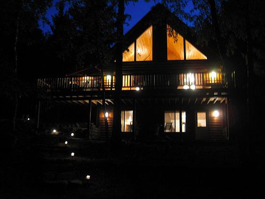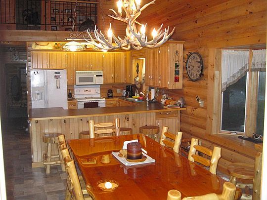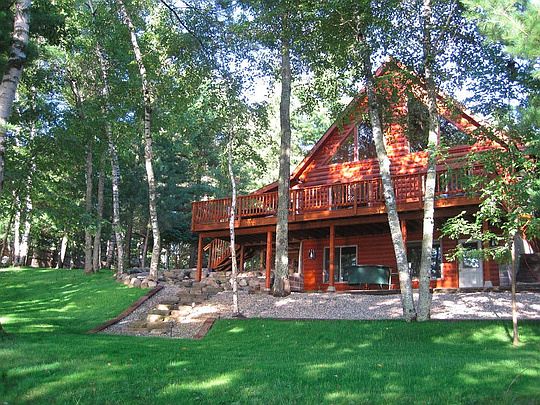 Magnificent private retreat. Exceptional 2800 sq ft, 1 1/2 story Northwoods log home w/walkout, 3+ bd, 3 baths, patio doors to large deck, double sided fireplace, vaulted ceilings, 3 season porch. Property also features 2 guest cabins with screened in porches, 2 bedrooms & 1 bath each. All on a 4+/- acre lot with 300' of excellent sand shoreline. All furnishings, pontoon & dock are negotiable.