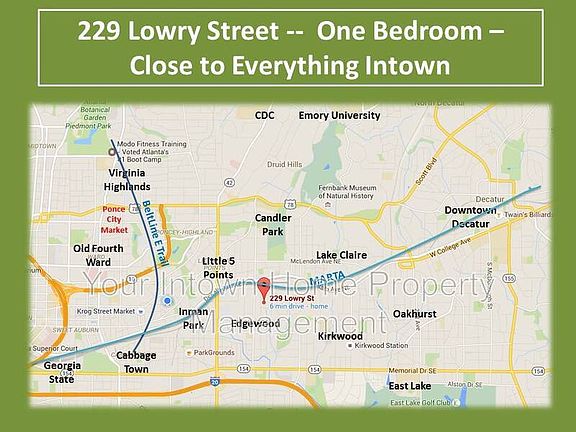 No car? No problem! Walk, bike or MARTA to everything in in-town Atlanta. A rare find in intown Atlanta, this 1 Bedroom 1 Bath home is perfectly located for walking, biking, MARTA rail service and interstate access when you are behind the wheel. When at home, enjoy a quiet dead-end street, nice yard and screened in porch. Inside you have kitchen, bedroom with decorative fireplace, bathroom and living room with a generous-sized closet. - Fresh Paint - Hardwood floors - Newly updated bathroom - Screen porch - Off-street parking for one car - Washer/Dryer - $40/mo for water and trash Non-smokers only Pet friendly with some restrictions: - 1 Dog - No aggressive or dangerous breeds. - No pets under 1 year old - $200 pet fee per animal - $20/mo Pet Rent - All pets must be screened by a third party as part of the application process $200 move-in fee Rent includes Resident Benefits Package - Online rent payment portal - 24/7 maintenance portal - Credit building program - Home-buying assistance (including up to 5% rebate of total rents paid towards a new home purchase) - One-time late fee waiver if funds are paid by the 5th of the month Application Criteria: Minimum 660 credit score Applicants' combined gross income is 3x the rent Positive rental history (no evictions, no bankruptcies, no money owed to landlords) We do not advertise on Craigslist and will never ask you for cash or to wire money or request funds through a payment app on your mobile device.