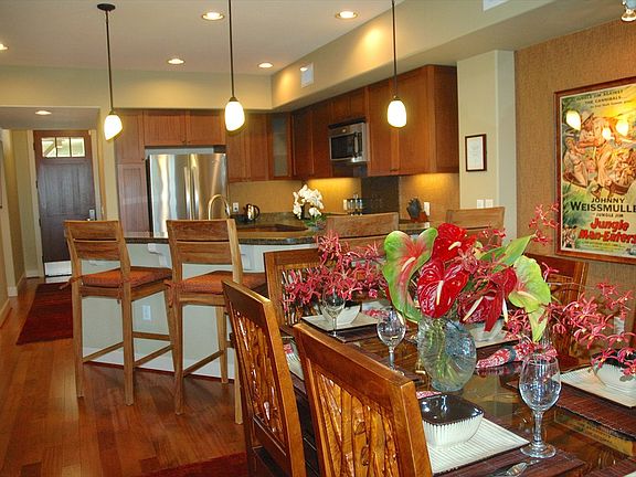 Want to own a slice of paradise and make rental income when your home is not in use? Well maintained, many custom feature turnkey unit ready for a full time or a part time residence. About the unit: • Constructed in 2007-2008, this 3 bedroom/3 bath, 1,677 square foot • 2 story – 1 bedroom downstairs, 2 bedrooms upstairs • 2 lanai – by main bedroom, by dining • Kitchen containing stainless steel appliances • Granite countertops • Dark mahogany cabinets • Detached garage and assigned parking • Custom wall units • well maintained • Successful vacation rental history • Transferable STVR registration Upgrade history: (2018) • New washer and dryer • Freshly reconstructed AC system (2017) • Brazilian cherry hardwood floors throughout the main floor • New area rugs and furniture throughout the living room and dining room • New carpeting throughout • Freshly painted throughout • New wallpaper throughout the kitchen and dining room • Designed and installed a mahogany custom entertainment wall unit in the living room • Added a 52” inch, Ultra 4K Smart HDTV to the living room • Ceiling fans in the living room • New hot water heater • Added plantation shutters throughout the house (2016) • New oven • New dishwasher • New refrigerator • Installed lanai French doors both upstairs and downstairs • AC auto shut off Halii Kai: • Only gated developments on Hawaii that has both its own private saltwater pool, BBQ area, as well as a private restaurant and bar (Ocean Club)—all overlooking the pacific! • Tennis court / Half basket court • Coconut Grove - Relaxing area with extra hammock and BBQ • Walk / bike distance of both the beach and world class shopping and dining • Contemporary Hawaiian luxury villa Included in the maintenance fees: Water & sewer, basic cable TV & internet, maintenance of the common areas.