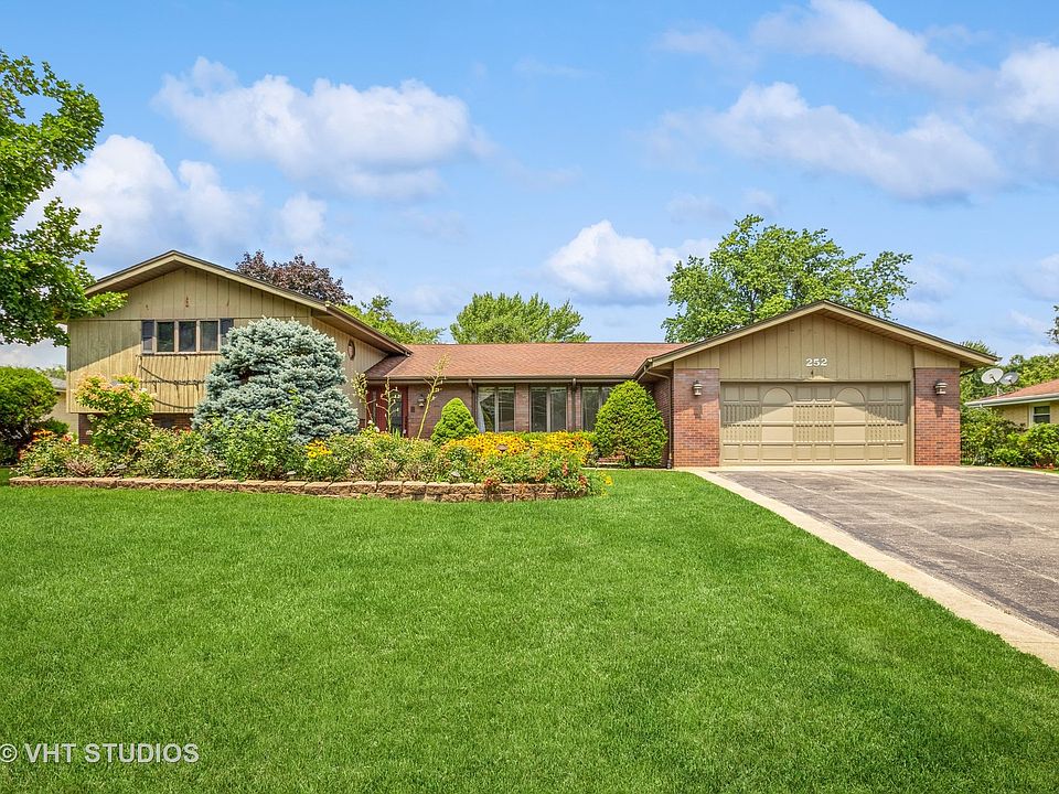 Builder's own spacious split level, 3360 living Sq ft plus 960 Sq ft partially finished basement in a park like .46 acre setting with greenhouse, 3 spacious bedrooms plus x large sunroom possible main floor bedroom, two kitchens one in lower level two laundry areas one with Bosch washer & dryer on main floor, family room has one fireplace and can be access directly from the 2.5 car garage. Huge patio area ready to entertain large parties. Let your pets run free with the convenience of an invisible fenced yard, Generac generator, central air plus split AC unit in primary bed for those who like it frigid, new carpets on upper level. Walk to Medinah Country Club, one mile to Metra and apprx 1.5 miles to highway. This solid home is a fantastic opportunity to create your very own luxury home in a great location.