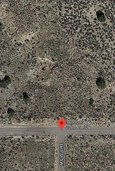 Here is an ideal opportunity to homestead on scenic, quiet, and isolated vacant land.One-half acre of raw land at the "top of the T," at the intersection of 22nd Ave SW @ 36th St SW, Rio Rancho, NM. Only nine miles from Rio Rancho High School, and six miles from gas and stores. Potential sale of 2 or more family-held adjacent lots is also possible. This lot is offered for $2000.00. Purchase of additional lots is more favorably negotiable. Email is best for making contact.