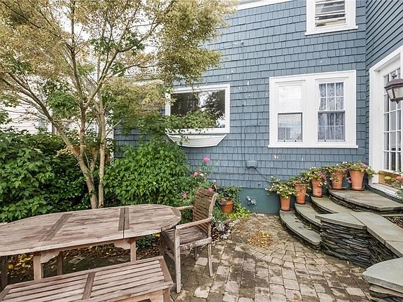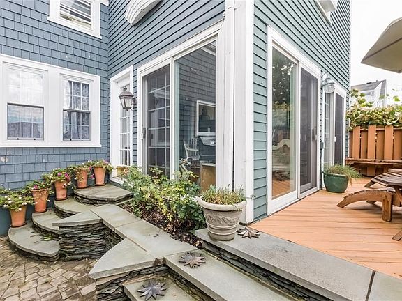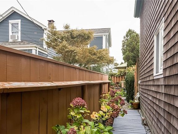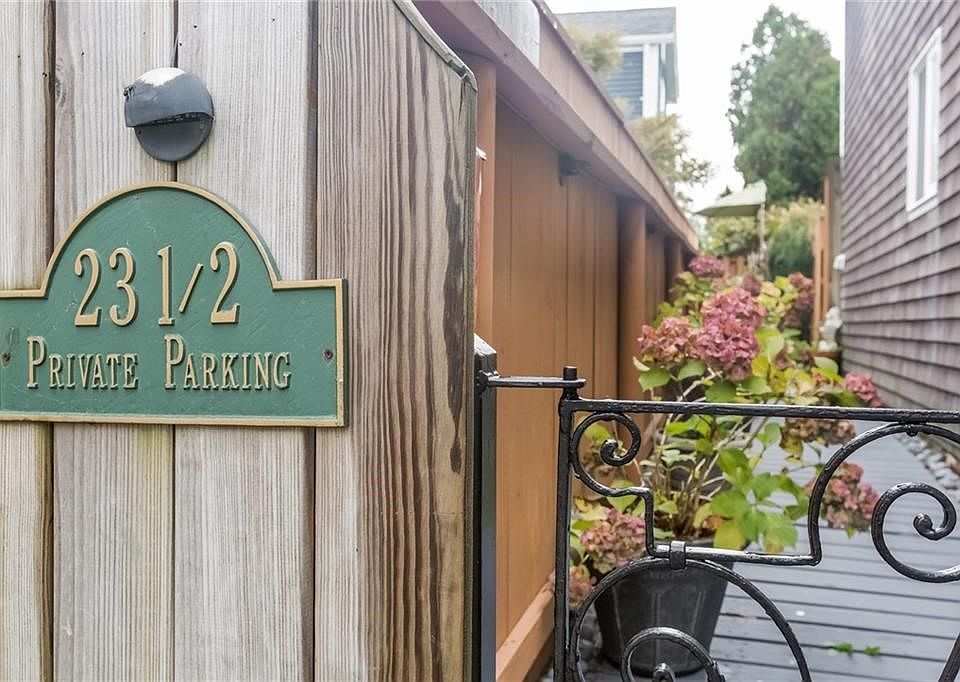 Welcome Home to this adorable, private Yachting Village cottage. Tucked away, open the gate and take a walk down the boardwalk off of a quiet, one-way street. There you will find this secret gardened home offering privacy unlike any other in the neighborhood. First floor has a living room flooded with natural light and glass doors which open onto an outside deck area; an open kitchen/large dining area; a half bath; and a cozy library room with a custom-built Murphy bed. Up the stairs you will find an oversized master bedroom with cathedral ceiling and skylights, as well as an updated ensuite bathroom with glass-tiled walk in shower; a very large second bedroom with skylight and also an ensuite full bathroom. This home has gorgeous wide plank hardwood floors, a private brick patio, off-street parking, and full basement. Within walking distance to Thames St. and the waterfront you will be in the middle of all the action downtown Newport has to offer, without any of the crowds or noise. A truly unique home.