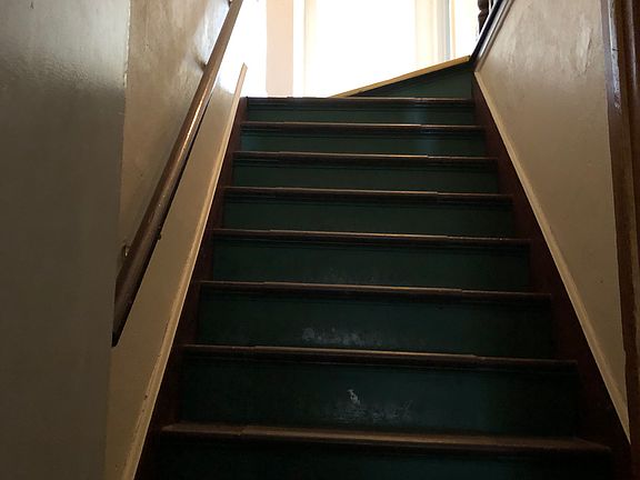 Upper unit in building. Once inside the entry take open your door to take your steps to the unit. Once there you will find the hallway with access to all the rooms. To the front is the living room, then the bedroom, full bath, and eat in kitchen. Year lease all utilities are included in rent except internet, cable and phone