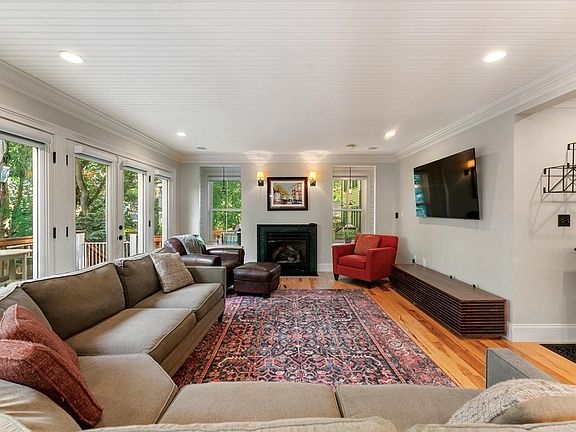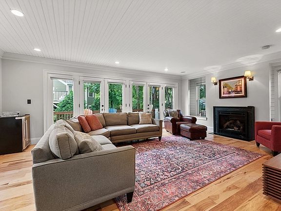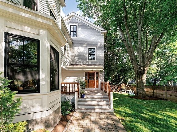 Situated in an urban oasis in the heart of JP. Stunning, expansive home built in 2016 with 4,086 square feet over 4 floors, 4 bedrooms, 3.5 bathrooms and including a deeded, carriage house which serves as a work from home office or studio. Open living area gives access to a rear deck, front & rear porch, patio & play yard from double French doors. 3 generous bedrooms, 2 bedrooms w/Jack & Jill bathroom and laundry closet complete the 2nd floor. 3rd floor is comprised of the main bedroom suite w/vaulted ceilings, walk-in closet, luxurious marble bath w/separate shower, double vanity & soaking tub. The kitchen superbly blends design and function w/marble topped counters & backsplash, Thermador appliances & gas cooking. Surround sound and high-end finishes include wide plank wood floors throughout, crown molding & recessed lights. Steps to vibrant Centre St shops, restaurants & T.