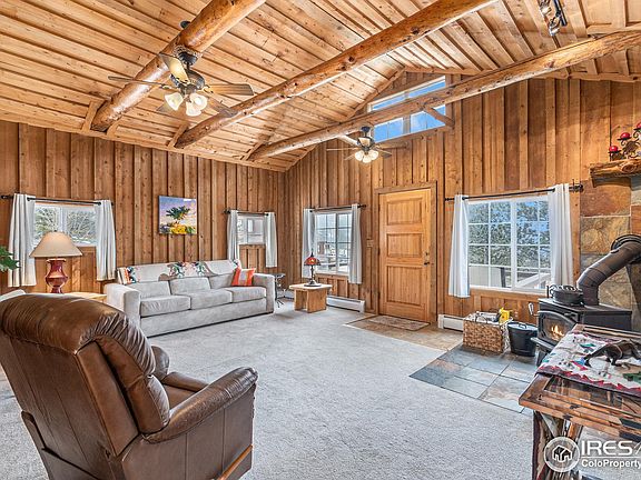 This charming log home is year round, move-in ready and fully furnished. Built originally in 1920 this historic mountain cabin is known to the locals as the McCollister House. This log home has beautiful wooden beams, wood stove, vaulted ceilings and skylights that provide fantastic sunlight throughout the home. Open floor plan with a spacious living room and a kitchen which includes a comfortable dining area. Offers privacy and is located in the heart of Allenspark. Easy access from Highway 7 and just a short drive into Estes Park. The home sits up on the hillside and offers good views from the deck and nicely landscaped walking paths surround the property. Heated year round laundry room. A shed with plenty of storage and property offers a gravel parking pad for two vehicles.