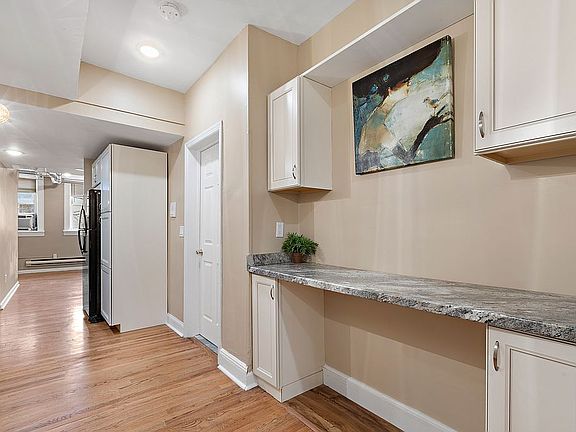Spacious and sun drenched condo with deck and backyard access. This lovely, well maintained home features 750+ sq ft, 1 bedroom, 2 baths, large open concept living/dining space, kitchen with new counters, backsplash, and cabinets, hardwood floors throughout, and recessed lighting. This unit has its own deck and backyard access as well as laundry right outside the apartment. The location of this property couldn't be better being only one block from buses to NYC and Liberty Skyline Park with some of the most breathtaking views of Manhattan.
