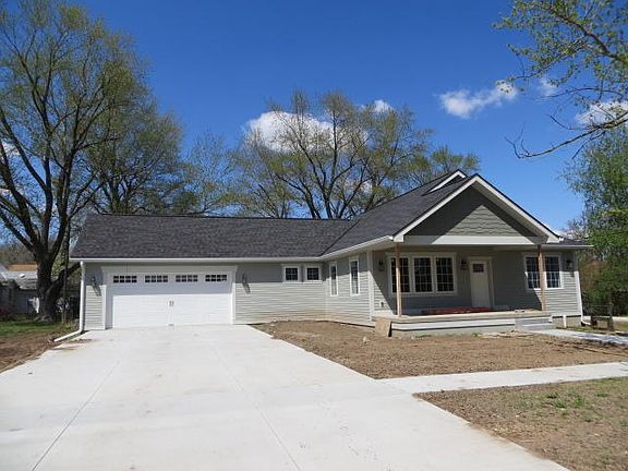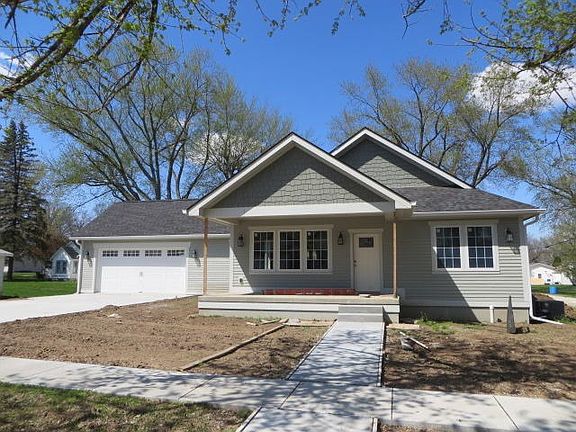 New construction by builder Eric Moores & Woodbine Construction Tech team. Quality throughout this new construction ranch home w/3 BR, 2 BA, & 2 car garage with additional storage. Open main level features kitchen with custom cabinets, granite counter tops, tiled back splash and new appliances. A convenient drop zone just off garage with bench and hooks, Main floor laundry, built in booth area w/ table for dining along with space at the counter for bar stools are some of the features along w/ Anderson Windows, High efficiency furnace & AC and a tankless water heater. The full basement is unfinished and ready for your design and ideas to finish as you please. Close to the school , city park, ball fields and new wellness center (Spring 2021) Front porch & yard in process of completion.