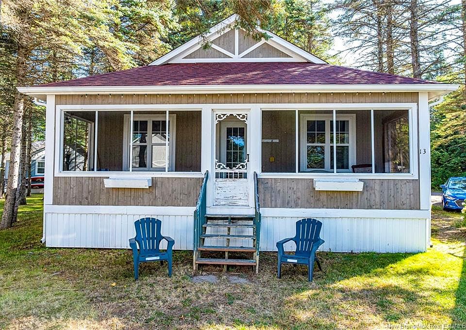 Home sweet home warm and cozy. spacious for its size a must see, vaulted ceilings and open concept plan. full updated bathroom. Bright and open kitchen(all appliances included) View of the ocean bay from inside the house and inside the screened in front porch. 2nd bedroom has laundry plugs and room for another bed and dresser. QUEEN sized master bedroom. hardwood flooring. painted in 2023 Great location walking distance to town and only 30 min from Moncton. Condo fee 300$ month. Affordable hydro bills and taxes town and only 30 min from Moncton. Condo fee 300$ month. A great year round home for single person/retirees /small family or income potential(think air B&B). A great year round home for single person/retirees /small family or income potential(think air B&B)- PROPERTY TAXES ARE NON OCCUPIED