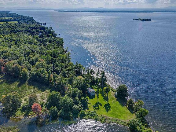 This Grand Isle lakefront property is one of the most unique pieces of land in The Lake Champlain Islands. Up for sale for the first time in over 100 years, this historic property is located at the end of a private dead end road on an extremely secluded 2.1 acre lot. It is situated on a point with 1,000 ft of gradual lake frontage with panoramic views of the Broad Lake, Nichols Bay, Long Point Island, Bixby Island, and Young Island. You can keep your boat on the protected bay while easily accessing The Broad Lake and The Gut. There are three original structures on the property including a 2 story seasonal home that was once a garage, an ice house that is used for storage, and a large garage. The home has many historic artifacts that were from the 1880s mansion that has since been removed. The open downstairs has a wood fireplace and Rinnai heater. Upstairs is amid renovations and is waiting for the new owners to bring their vision. Second floor renovations include new insulation, windows, plumbing, electrical, and a new bathroom. Downstairs updates include a new water, water pump, and appliances were replaced. There is much potential to complete the renovations to your liking or use the camp as is until you are ready to build your own waterfront home. Don't miss the opportunity to view this extraordinary property!