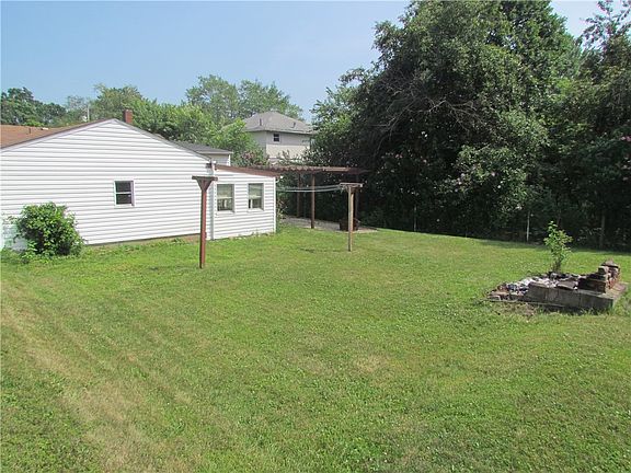 This charming ranch home sits on a spacious lot, boasting a covered front porch that welcomes you in. The backyard is an inviting retreat with a fire pit and a lovely pergola for outdoor gatherings. Inside, the home features three bedrooms, with the third bedroom designed as a versatile captured room. The kitchen, bedroom, and bathroom boast new flooring, while the eat in kitchen offers plenty of space. The large living room provides a cozy space for relaxation. The full basement has been recently painted and sealed, and newer block windows bring in ample natural light. The electric box, water tank and front door were replaced approximately 4 years go.