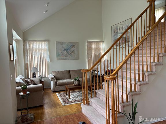 4-bedroom Colonial located in Sunrise landing, East Brunswick. This large model home features high ceilings on the first floor, hardwood floors, & and is meticulously maintained and move-in ready (Furnitures can stay). Kitchen with a separate eating area and a gorgeous view towards the scenic, private backyard. The open & bright living room & formal dining room are excellent for entertaining. The two-story family room with a fireplace has an abundance of natural light. The second floor boasts a spacious master bedroom with a luxurious bath. Three additional good-sized bedrooms with lots of closet space & the main bath complete this level. A sliding glass door leads you to the large patio. Easy commute and blue Ribbon Schools! Available Now!