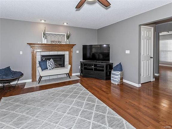 Be prepared to be impressed! Very well maintained home on great cul-de-sac lot! Whole house interior freshly painted. Two story entry foyer - features front & back staircase. Kitchen is updated with stainless appliances and brand NEW granite countertops. Features ample cabinets, center island w/breakfast bar and pantry. Kitchen opens to large breakfast/dining area and living room with large bay window, gas fireplace and beautiful hardwood floors! Formal dining room. Main floor office with lots of windows and hardwood floors. Main floor laundry and guest bath. Upstairs you will find a large master bedroom with vaulted ceiling. Huge, luxury master bathroom with dual bowl vanity, soaking tub, separate shower and privacy toilet. All upstairs bedrooms are very nice size with ceiling fans and wood laminate flooring. Lower level walk out is finished with 5th bedroom (being used as work out room). Plenty of room yet to finish and rough in for bathroom. Patio and deck overlook wooded back yard!
