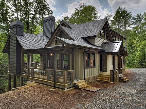 - Exterior: Porch, Wooded Lot, Private Location, Deck, Wrap Around Deck, Exterior Fireplace, Firepit Area