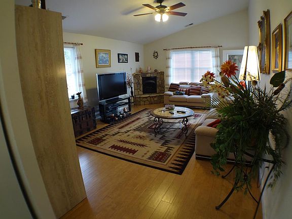 This well maintained corner town home has a private back yard with beautiful shrubbery and flowers and a patio to sit out side and enjoy these wonderful spring days.Inside has high ceilings, stone fireplace,high grade laminate floors, ceramic tile and new carpet in the bedrooms. The large kitchen has granite counter tops and room for a breakfast table. It also has a breakfast bar and dining space. The sun room is such a nice place to hang out and enjoy the outside in winter months and when summer comes open the windows and have a screened porch. Visit with your neighbors on the front rocking chair porch. The garage has pull down steps for extra storage in the attic.The master bath has a large ceramic tile shower, dual vanity and ceramic floors.It's very nice.