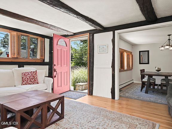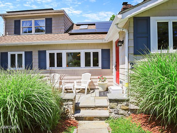 Attractive Cape with hardwood floors and solar panels. Eat in kitchen with walk in pantry. Large deck off Kitchen Living room with fireplace, wood beams, and wainscoting. 4 bedrooms 2 full baths. Walk out basement & fenced yard. Off Street Parking for 3 cars. Updated central A/C and heating. Move right in.